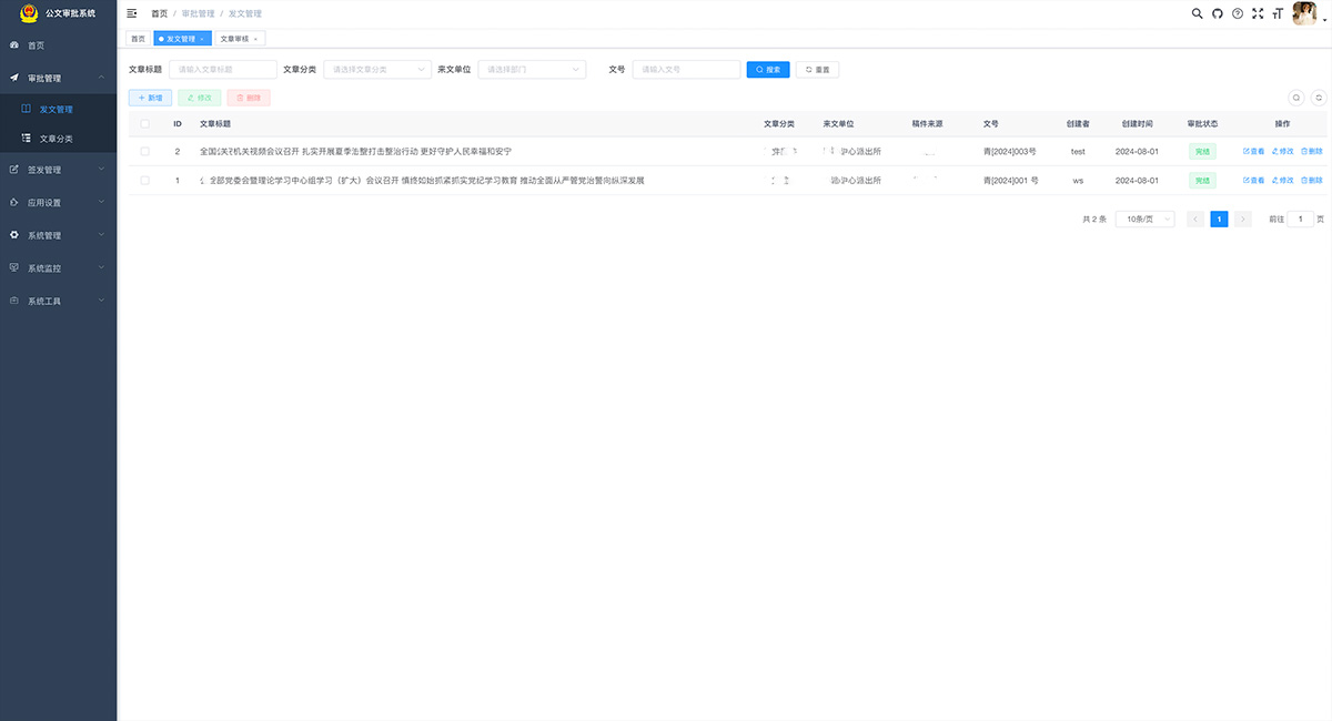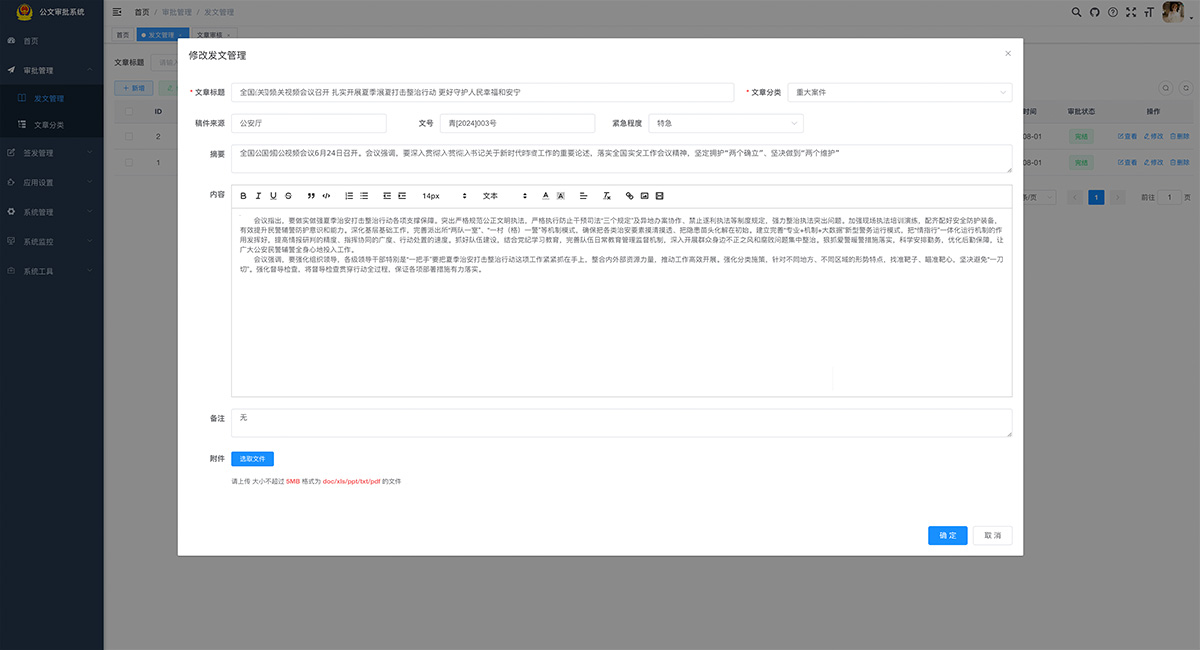 適用于政府機關、企事單位公文審批,系統采用Java EE 企業級快速開發平臺,基于經典技術組合(Spring Boot、Spring Security、MyBatis、Jwt、Vue),內置模塊如:部門管理、角色用戶、菜單及按鈕授權、數據權限、系統參數、日志管理、代碼生成等;